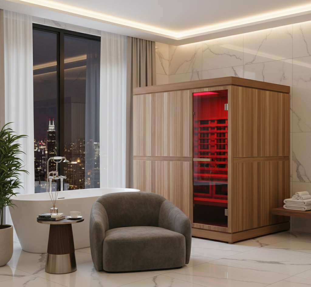 Enjoy the benefits of Infrared Sauna Bathing at 170-degrees Fahrenheit combined with a true Finnish sauna!