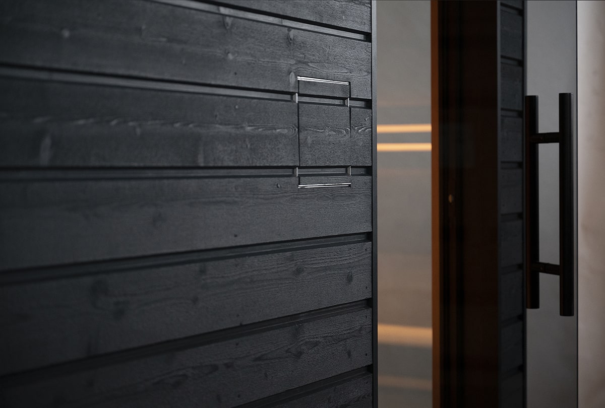 - Finely sawn Spruce exterior cladding (painted black)